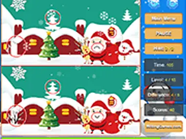 క్రిస్మస్ స్పాట్ డిఫరెన్సెస్ లో ఇప్పటికే క్రిస్మస్ సమయం వచ్చేసింది, ఆసక్తికరమైన కొత్త తేడాలతో. ఇచ్చిన సమయం లోపల రెండు క్రిస్మస్ చిత్రాల మధ్య 5 తేడాలను గుర్తించండి. తేడాలను ఎంచుకోవడానికి మౌస్ ఉపయోగించండి, లేదా మీరు మొబైల్లో ఆడుతుంటే, స్క్రీన్లోని సరైన స్థలంపై నొక్కండి. క్రిస్మస్ శుభాకాంక్షలు!