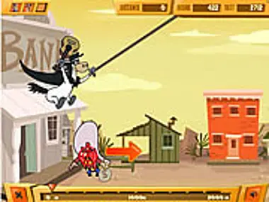 Help El Kabong hit the bank robbers with his guitar as far as possible.